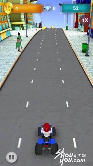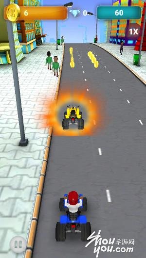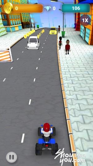 游戏的名字虽然叫“自行车”但是实际上Meek Mill开的是一辆卡丁车,在马路上许多车子来来往往,玩家要做的就是帮助Meek Mill避开不断疾驰而来的汽车,同时在艰险的马路上搜集金币!本来钱大哈以为游戏中会播放男猪脚的饶舌音乐,但是没有哦!