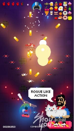 游戏画面:2D竖屏画面,游戏虽然是像素风格,不过游戏的光影效果做得十分出色,喵星人射出的各种子弹也是十分酷炫。战到后面满屏满屏子弹,眼花缭乱的节奏。