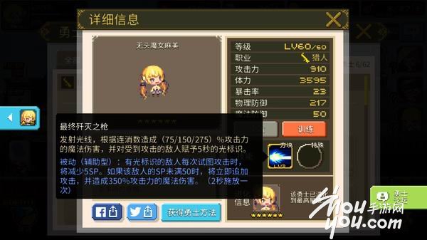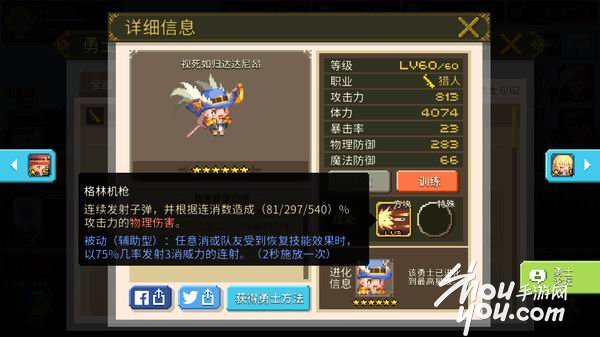 猎人是一种较为中庸的职业,他拥有比弓箭手更强的生存能力,但是在对敌方造成的伤害上却没有弓箭手强势,甚至大多数技能都只能命中敌方前排,所以让小编感觉是一个蛋疼的职业,目前小编贝斯培养的猎人只用于副本推进,对于清理敌方小怪有着不错的效果,但是不建议在竞技场中使用。