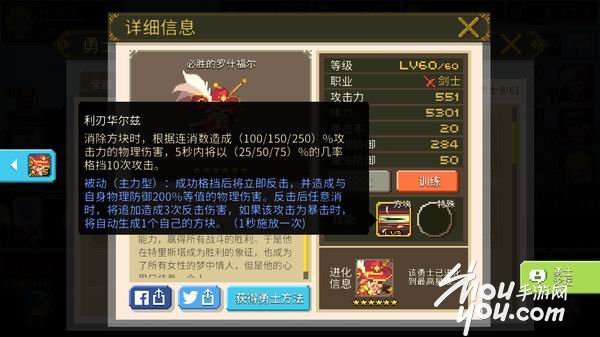 在游戏中剑士拥有非常平衡的数值发展,生存能力和攻击力都十分突出,可以在副本和竞技场中发挥非常强大的战力,而主角“里昂”更是玩家最值得培养的初始英雄,而特殊技能“旋风斩”更是在竞技场中压缩敌方战线和游走空间的一大强力技能,请各位玩家务必重点培养。