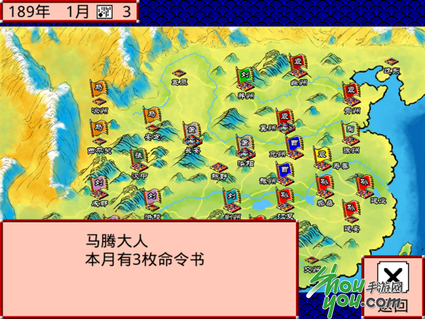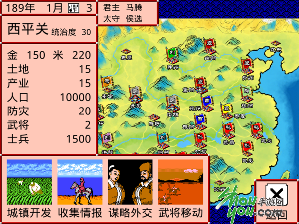 在游戏中玩家要进行行动时需要消耗命令书,根据玩家拥有城池的数量每轮行动时玩家所获得的命令书数量都不同。在选中城池后有政厅、军队、仓库以及市集四种选项,在政厅中玩家能够通过城镇建设来发展经济以及人口,有了经济基础之后才能够有足够的资源去进攻敌人,在发展经济的同时也千万不要忘记建设抗灾设施否则一旦天灾来临则长久的辛苦就全白费了。同样在政厅中还能够通过派遣武将进行收集情报来获取在野的武将以及探索获得一些物资,而通过谋略外交能够结交盟友,离间敌方武将以及招揽武将等。