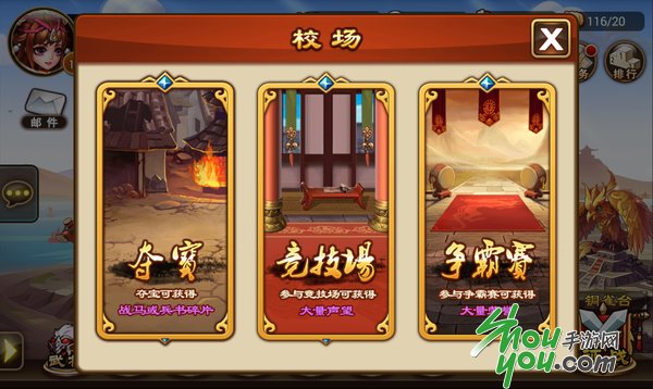 在《三国吧兄弟》中除了剧情的线性玩法作为游戏的主要升级途径以及装备获取途径外,在小编看了其PVP的掠夺玩法也同样可以作为游戏的主要升级途径以及装备获取途径。玩家需要通过掠夺与自己战力相近的其他玩家来获取宝物碎片,并且就算没有夺取到也能够进行抽奖来获取各种素材。而除此之外游戏还有竞技场、铜雀台、过关斩将、白虎洞以及军团等各种各样的玩法,种类可谓相当繁多。