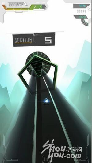 游戏操作:和传统跑酷游戏类似,场景中也设置有三条通道,玩家可以通过点击屏幕左右的方式来操控飞船选择通畅的道路,躲避各种障碍。不同的是游戏并没有提供跳跃以及下滑的操作,所以操作模式简单许多,不过为了增加游戏的刺激性,在本身节奏就很快的基础上由在通道上增加了加速环,简直~爱死了。