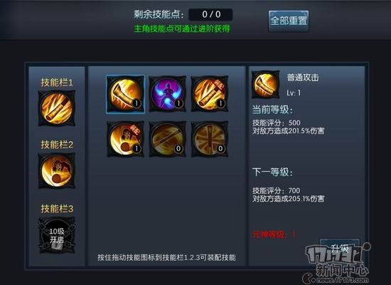 选择四个技能中的三个作为主要技能使用