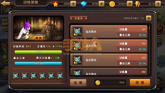 英雄等级属性不高,那么就来训练英雄吧,100%的暴击率,训练到MAX,没有什么是做不到的。
