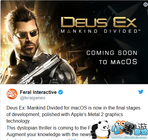 《杀出重围:人类分裂(Deus Ex: Mankind Divided)》由Eidos蒙特利尔开发、Square Enix发行的高分游戏,在2016年8月于PS4/Xbox One/Windows PC上发售。后来Feral Interactive将游戏移植至Linux,由于苹果在六月发布了最新的Metal 2 API图形接口,macOS版的移植工作被推延。