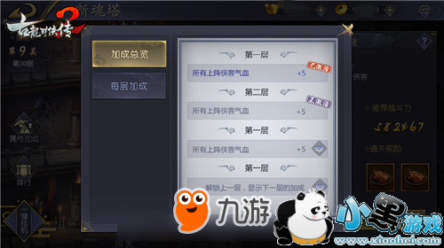 当然,少侠们也不用过于担心自己的战力会不满足推荐战力。因为只要少侠们通过一层之后,便可获得该层的加成属性,冲层越多,全队所加属性便越多。因此,在断魂塔中低战力越阶挑战成功的事比比皆是。