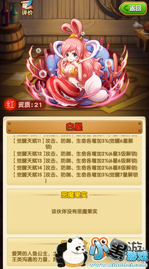 白星公主,到底是软弱的爱哭鬼,还是威力绝伦的三大古代兵器之一的海王波塞冬?这取决你怎么看她啦。在《航海王强者之路》中,只要你愿意,白星公主就是最好的辅助。能力超级全面,能回血、能回怒、有减伤、还有控制,每一项能力都非常强大,最重要的是非常可爱!