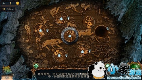 如果有的木雕放错位置了,可以点击它们,木雕就会移动到中间区域,然后再点击正确的木雕,就能移动到空出来的地方,利用机关中间的空洞来移动位置。