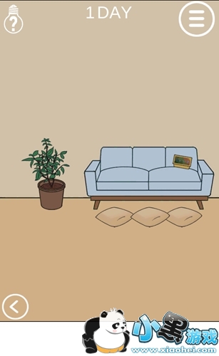 右侧房间可以看到有一个沙发,上面有三个抱枕,点击这三个抱枕将它们拿开。