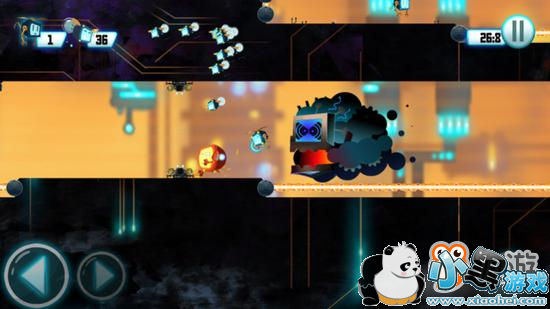 在游戏进度达到一定位置时会有一个类似怪物的存在对玩家紧追不舍,这个时候我们就需要跑到一个激光装置后面然后看着这个跟踪狂被激光搞死,feel nice huh?是的没错,这款游戏的主旨与跑酷游戏非常相似,玩家也需要像马里奥一样闯关并收集尽可能多的小电视。