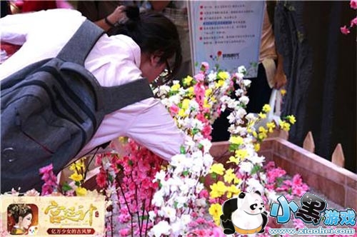 游戏里,小主们漫步御花园时总是能在路边捡到一些掉落的鲜花骨朵。而在CJ现场的“御花园”则有人将这些花朵重新扦插。平日历孔武有力的汉子们来到《宫廷计》展台,也手拿花枝、认真思考该怎么装扮这片小花园。