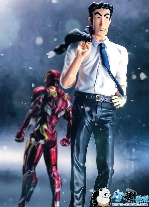 叉着腰挑着西装站着的样子也太帅了吧?!在钢铁侠的衬托下,小新老爸似乎也变成了一个超级英雄,仿佛下一秒,小新老爸就要和超级英雄们一起拯救世界啦!