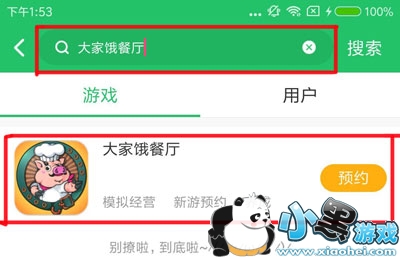 2.安装好后,打开好游快爆,点击右上角的搜索按钮,输入“大家饿餐厅”,待游戏出现后点击旁边的【预约】按钮即可进行预约。