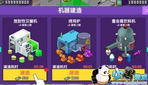 玩家负责经营一家快餐厅,通过升级不同食物生产机器来满足更多客人的需求,同时赚取更多的游戏货币来升级扩建自己的餐厅;玩家可以在电话亭中获得更多不同需求和外貌的顾客;每位顾客随着对餐厅食物的消耗,其外表会逐渐发生变化,其对食物的需求也会慢慢变得更高阶,与此同时每次购买食物的花销也会增加。