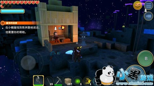 3.找到这个屋子,把他身旁的箱子(小盒子)挖掉,使用玉龙去到桃林