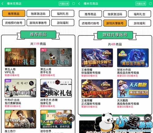 2、还可以用爆米花兑换各种游戏礼包,体验服租赁账号,好礼多多,兑换无极限。