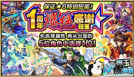 「1周年爆绝感谢扭蛋」会以「进化合成后(★6)」、「神化合体后(★6)」或「兽神化后(★6)」的形态扭出!
