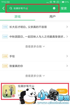 2.安装好后,打开好游快爆,点击右上角的搜索按钮,输入“绘真妙笔千山”,待游戏出现后点击旁边的【预约】按钮即可进行预约。