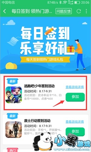 3、在列表中找到【每日签到,领热门游戏礼包!】活动进入。