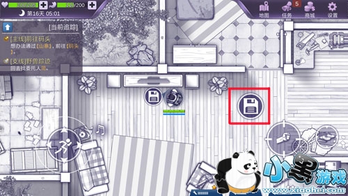 走进庇护所中的电视机前,点击右侧弹出的存档按钮。