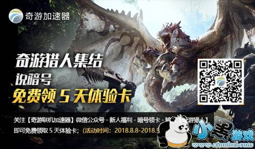 所以,小奇送上的福利更要记得领取了,领取方式:关注【奇游联机加速器】微信公众号-新人福利-暗号领卡-输入【奇游猎人】即可免费领取5天体验卡,时间:2019.8.8-2019.9.8。