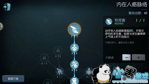旁观者:这个天赋可以让我们确定残血队友与屠夫的位置,从而在屠夫死追人的情况下迅速躲开屠夫。