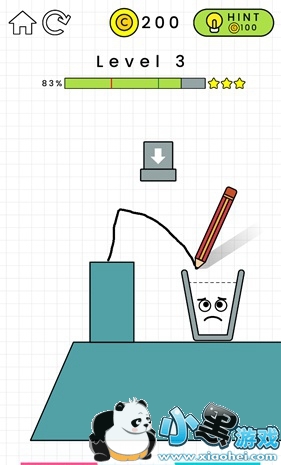 当然,每一个关卡理论上都是可以获得三星的,只是看大家使用的方法是不是最优的方法,上图中其实就可以只用单边画线,就能托住杯子了,这样也就能获得三星了,。