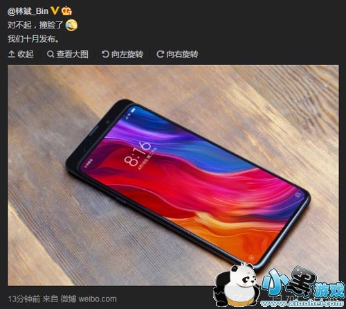 小米联合创始人、总裁林斌发布微博,表示他们在十月份也要推出新款手机,还与华为“不小心撞脸了”,那么由此看来,小米MIX3也极有可能是这个设计。