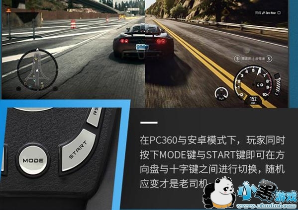 北通瞬风189方向盘是一款具有卓越力反馈性能的方向盘,可以带给玩家清楚细腻的真实驾驶体验,更能让玩家融入赛车每一次超越、漂移、转向、变速和失控的操控全过程,实现"人车合一"的赛车最高境界。该方向盘采用了强大的X/D双模引擎,使得系统可以自动识别为XBOX360设备,无需任何繁琐的安装和设置流程,即插即玩极品飞车、跑跑卡丁车、世界汽车拉力锦标赛等各种新老赛车游戏。