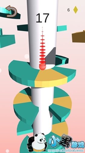玩法很简单,就是滑动屏幕旋转中心圆柱,然后让弹跳的小球可以从每一层的缺口中掉落到下一层去,掉落层数越多,获得分数越高。