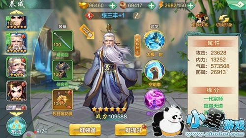 窥得天道:同时拥有张三丰、江天雄、大理神僧,攻击+10%,气血+30%
