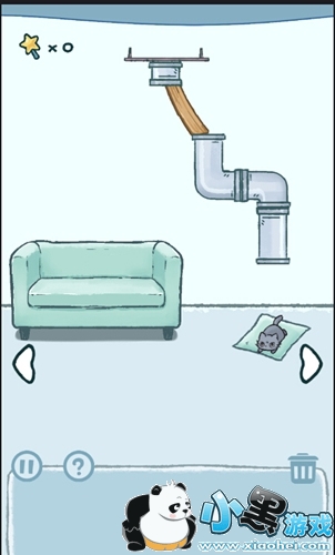 然后回初始房把管道调整到合适位置,搭上木板,把沙发靠背拿下来铺到地上,用逗猫棒把猫引下来。