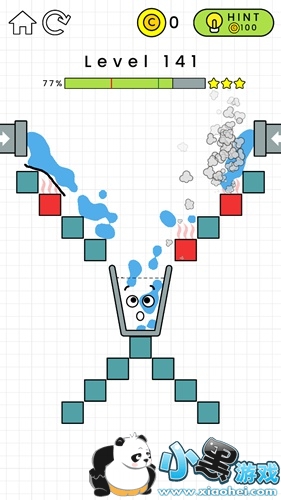 第141关:在左上角水管出口处画一个小短线,避开火方块即可,右侧不用管,左侧的水量就足够了。