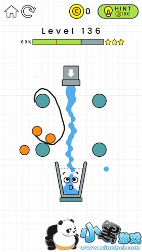 第134关:这关要快速在玻璃杯两边画线,可能一次无法完成,大家多尝试几次即可。