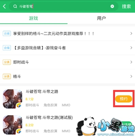 2.安装好后,打开好游快爆,点击右上角的搜索按钮,输入“斗破苍穹”,待游戏出现后,点击预约按钮进行预约。