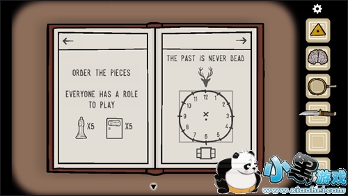 根据心理治疗书的提示,另外还有窗户(录像机放映游戏之后出现),得到两个时间,3:00与11:45(看治疗书里,鹿头是12,窗户是6,以此类推,地球仪是11。具体地说空间上设鹿头为12点方向,窗子正好在6点方向,于是地球仪在11点方向,如此类推),得到方糖和硬币。然后切换成现在的大脑,把方糖拿去给乌鸦了。