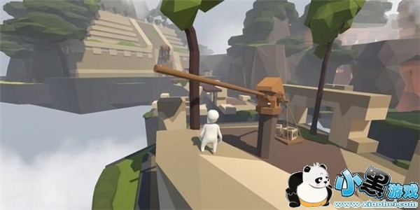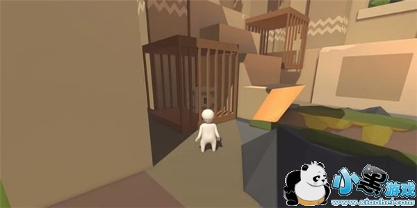 先从石台爬上右侧木笼的上方,用Bob的自重将左侧木笼抬升。