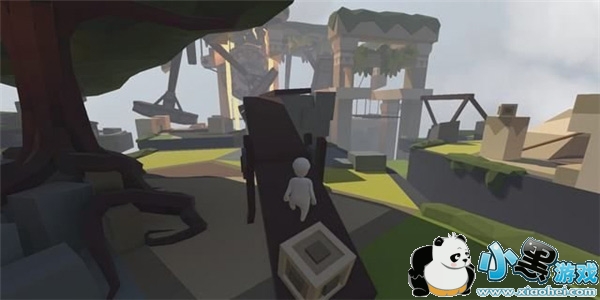 此场景内有一个可旋转的杠杆-吊板机关,和放置于高处的两个木块。