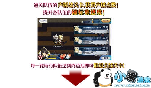 本活动中,随着主线剧情的推进,将会开启6支队伍争夺排名的「锦标赛声援战」关卡。