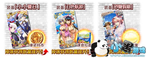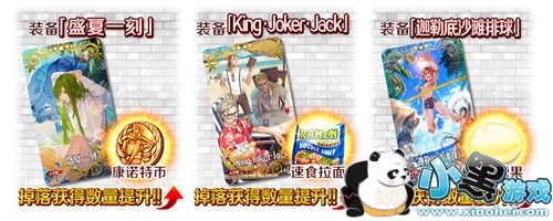 通过装备限时概念礼装「★5(SSR) 盛夏一刻」「★4(SR) King·Joker·Jack」「★3(R) 迦勒底沙滩排球」可提升活动道具的掉落获得数量。