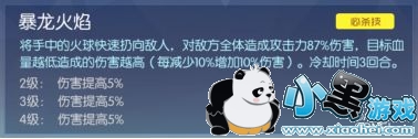 必杀技,群伤技能,目标血量每减少10%增加10%伤害,冷却时间3回合。