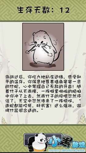 竹鼠活下去虽然是生存类游戏,但是没有动作的因素,而是文字选择为主,玩家在游戏中会遇到各式的事件,你的选择会对竹鼠的命运产生影响。