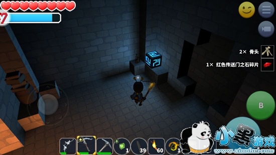 10、在探索地牢的时候经常能遇到下图中发光的方块,打破它们必定会掉落一个高级魔法药水,前期遇到一个也不要放过,后期的蓝就全靠它们啦!