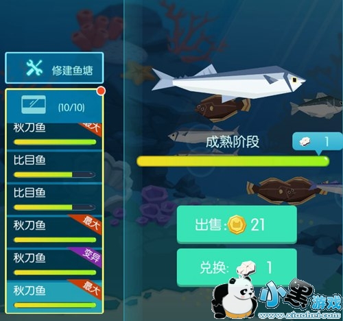 进入【农田】,滑动可看见【鱼塘】,利用【鱼苗】进行养殖,长大后即可出售换取大量钢镚。