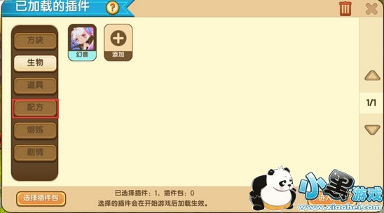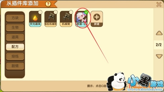 这个时候我们就要添加关于插件生物的生物蛋配方了,一定要先将插件库的生物添加进地图内的插件库中,然后点开配方。
