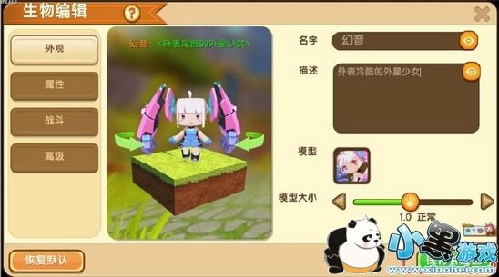 描述:简单讲述生物的作用,在你使用了一个模型却做了很多属性不同的生物时记得简单描述一下,便于区分。