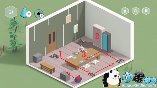 如上图,这一关主要是控制好中间那块桌子,翻了炸弹就会被挡住了。