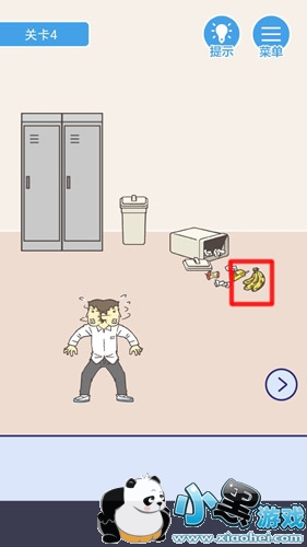 垃圾桶倒下来,可以获得里面的烂香蕉,然后点击右下角按钮前往右侧区域。