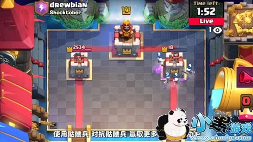 应对方法:使用雷电法术即可消灭,还可以使用巨人、戈仑冰人、掘地矿工这类卡牌进行拉扯,同时由于其一次只能最多攻击3个单位,使用亡灵大军来解也是不错的选择。